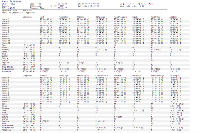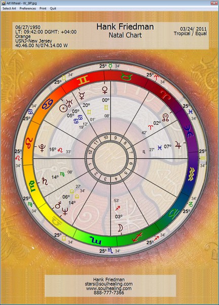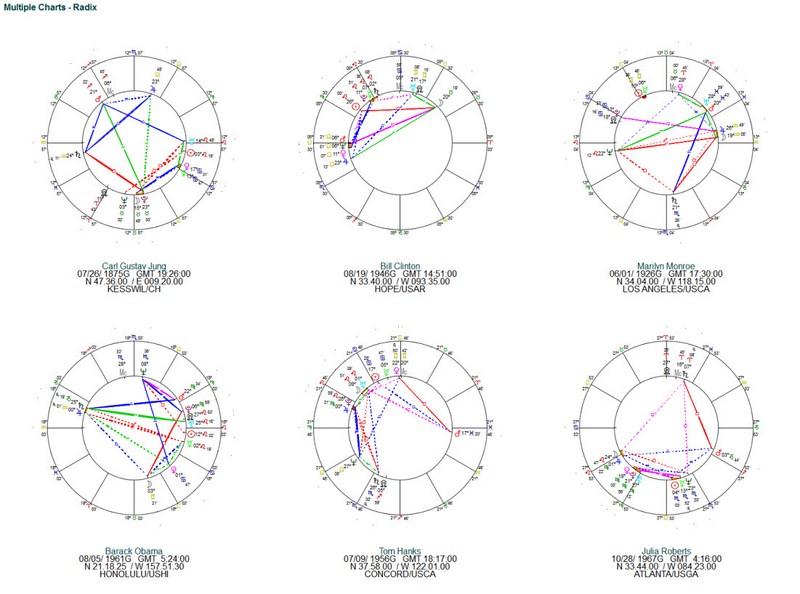 Here are a basic wheel, a traditional wheel, a local space wheel, a Fixed Star wheel, an Arabic Parts wheel, a Nakshatra wheel, a Hellenistic chart, a midpoint wheel, a midpoint dial, and a double Sidereal/Tropical Zodiac wheel.