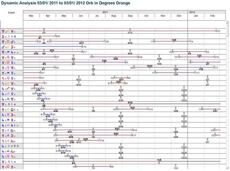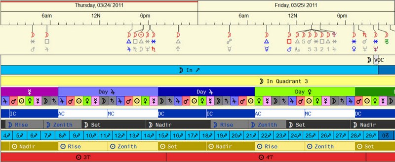 Day Scan, Time Line, Graphic Ephemeris, Circular Transit Wheel, an Animated Wheel, and two Astro-Calendar Formats